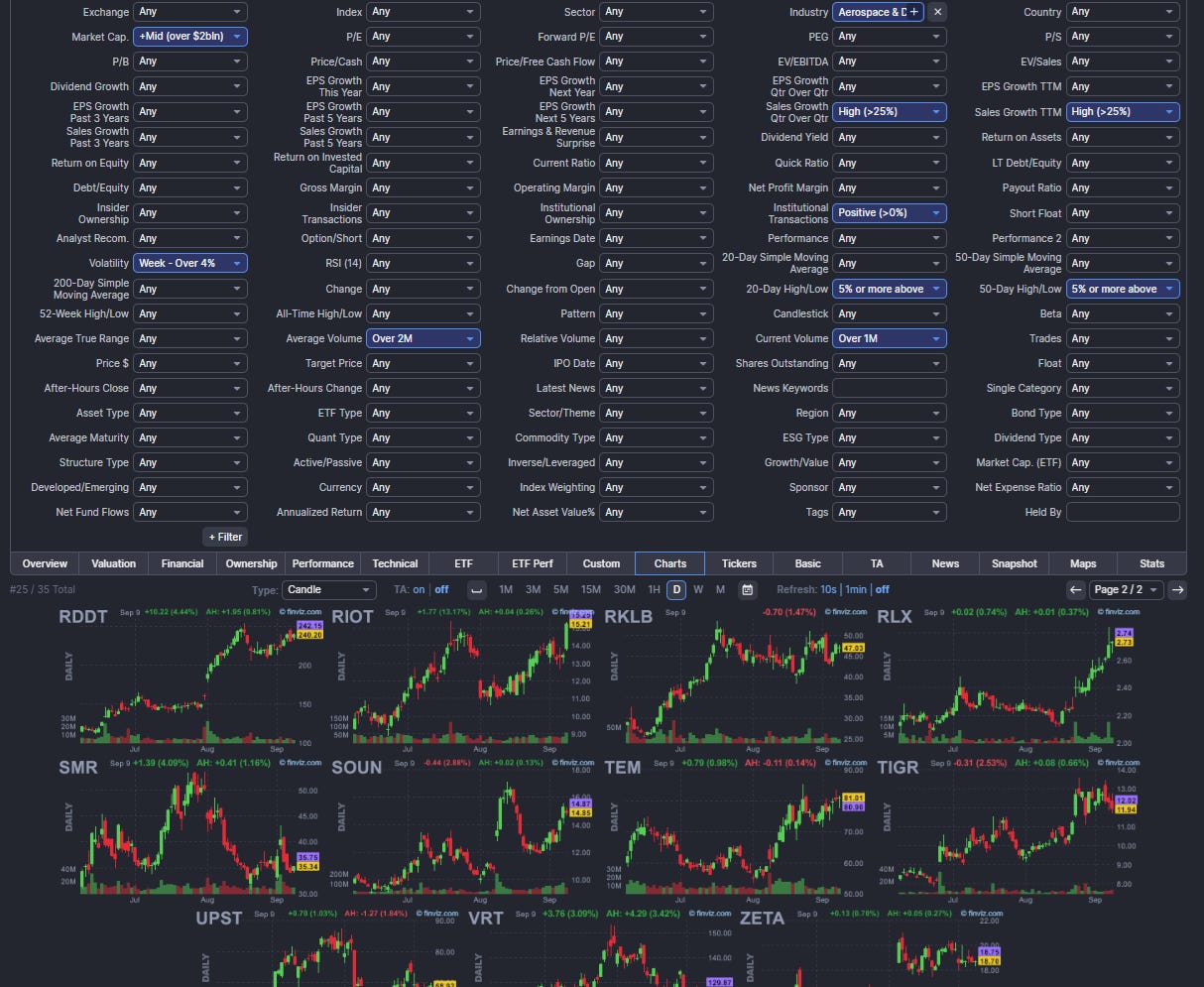 1) I have 14 screeners for post-market analysis, shifting their results into dedicated watchlists by purpose.